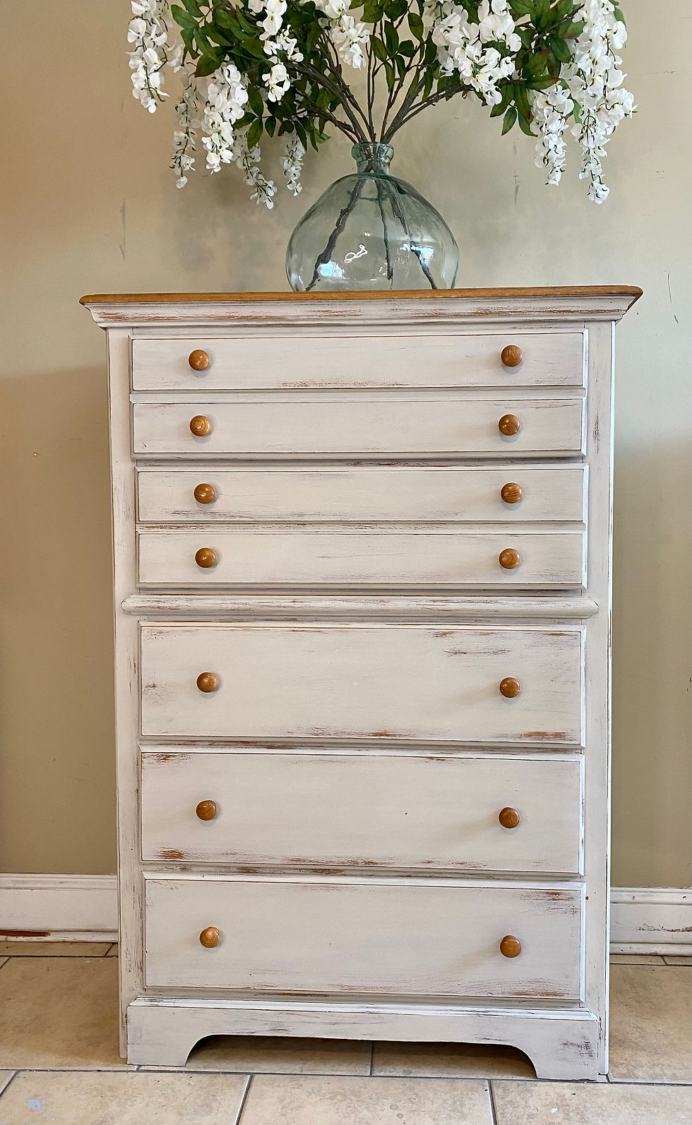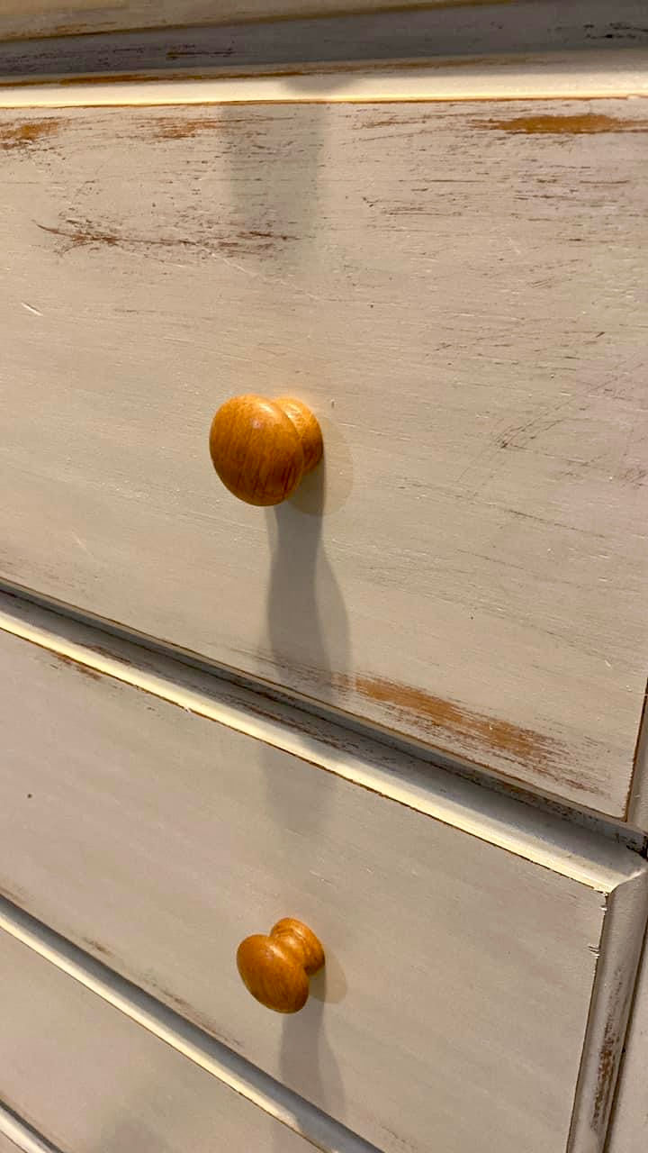 This piece is painted in Toasted Coconut. I love the color, a soft off white which looks gorgeous with the natural knobs and top.